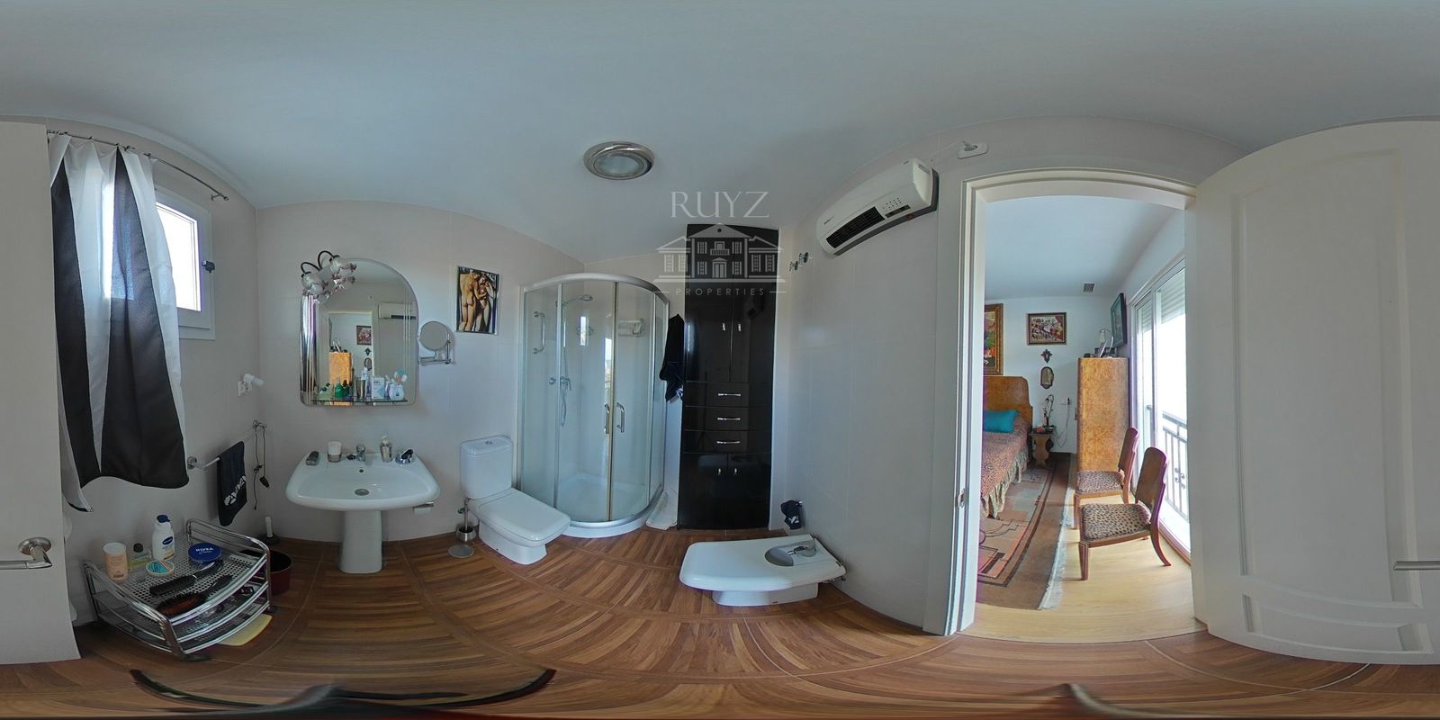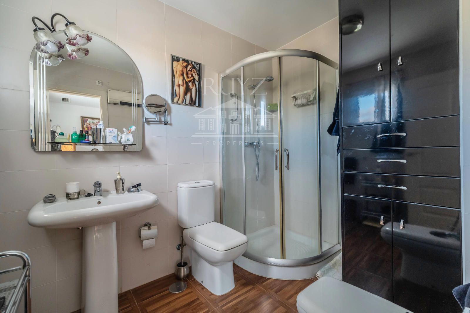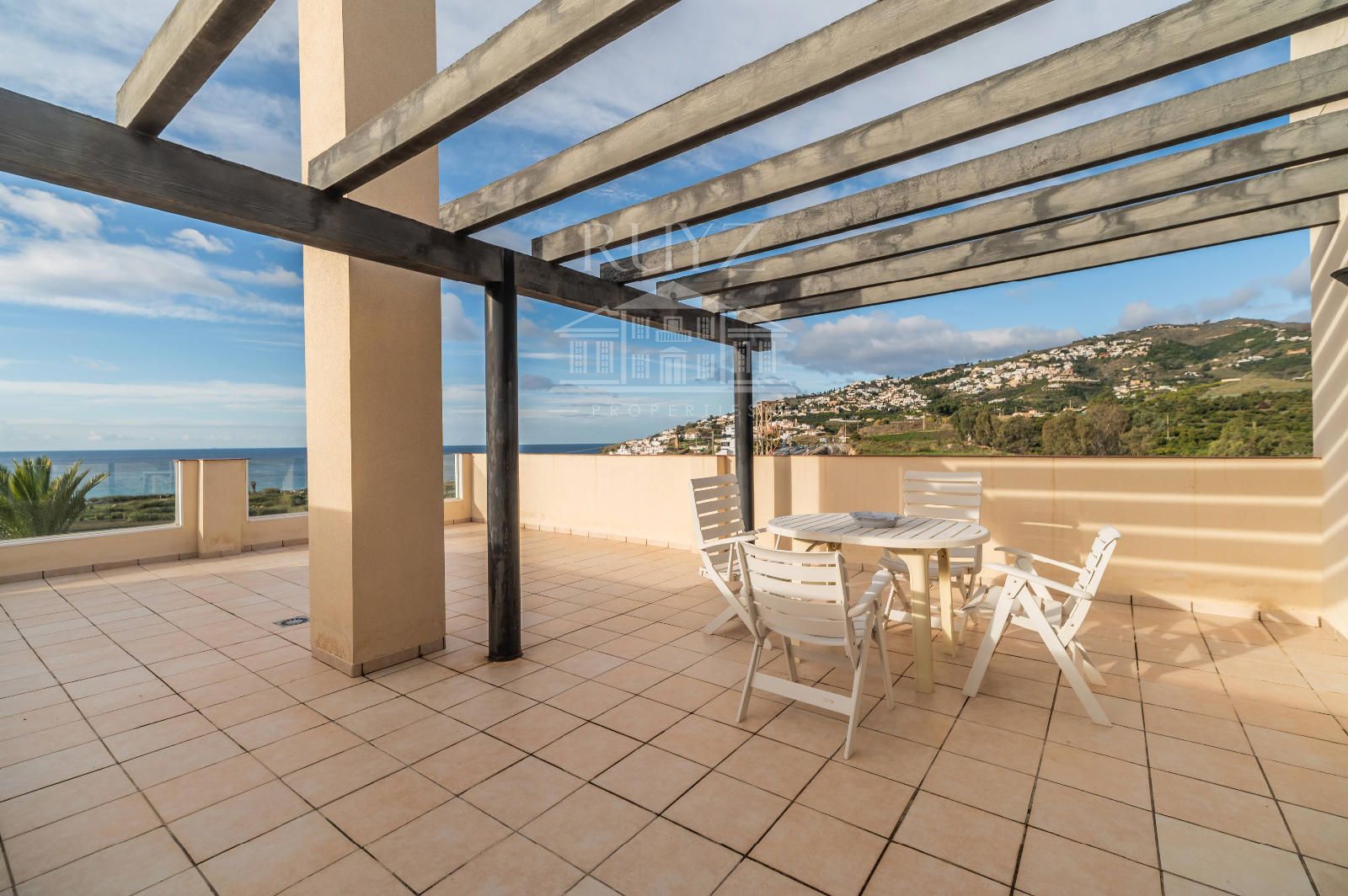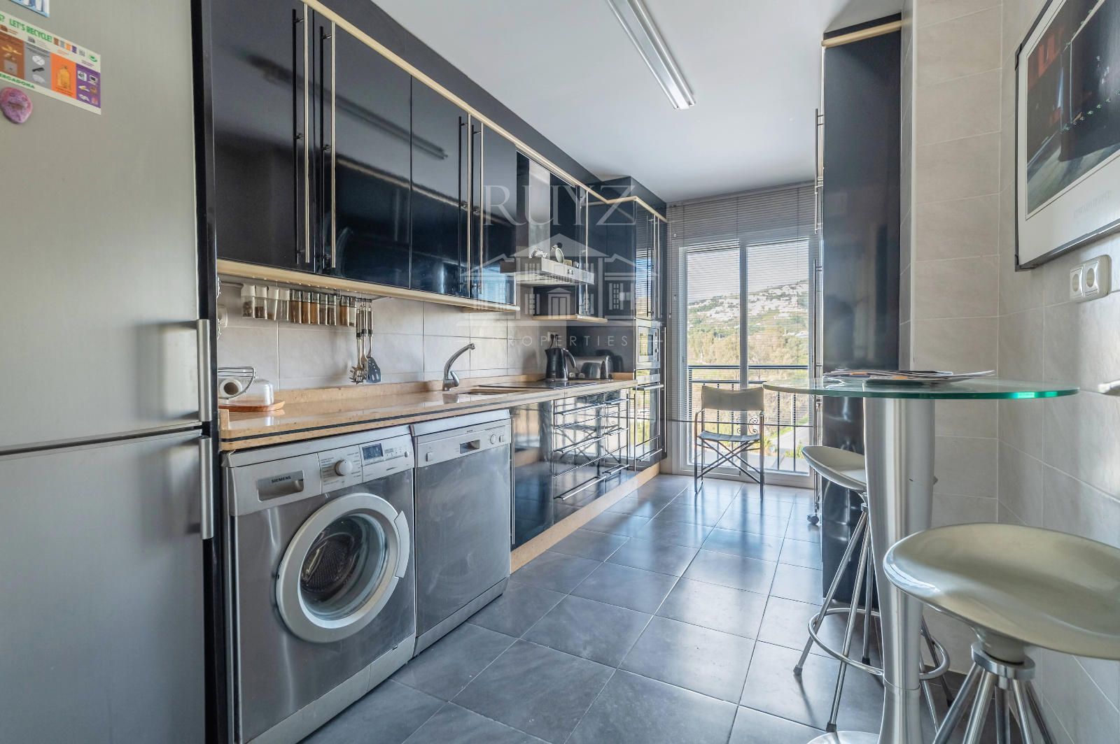 The property is completely exterior and offers spectacular views from every room, encompassing the blue of the Mediterranean Sea and the serenity of the nearby mountains. From the very first moment, the entrance hall leads into a bright and elegant home. The fully equipped and functional kitchen is designed for everyday living without sacrificing style. The spacious master bedroom is a true retreat, featuring an en-suite bathroom and a walk-in closet, while the two additional bedrooms provide versatility and comfort for family, guests, or even a home office.